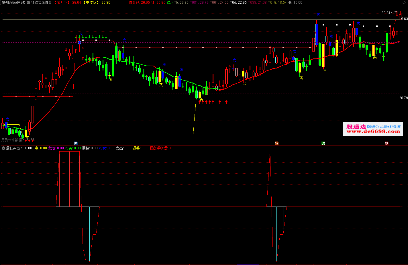 【操盘预警信号:向上红箭头提示建仓,向下绿箭头提示风险;】