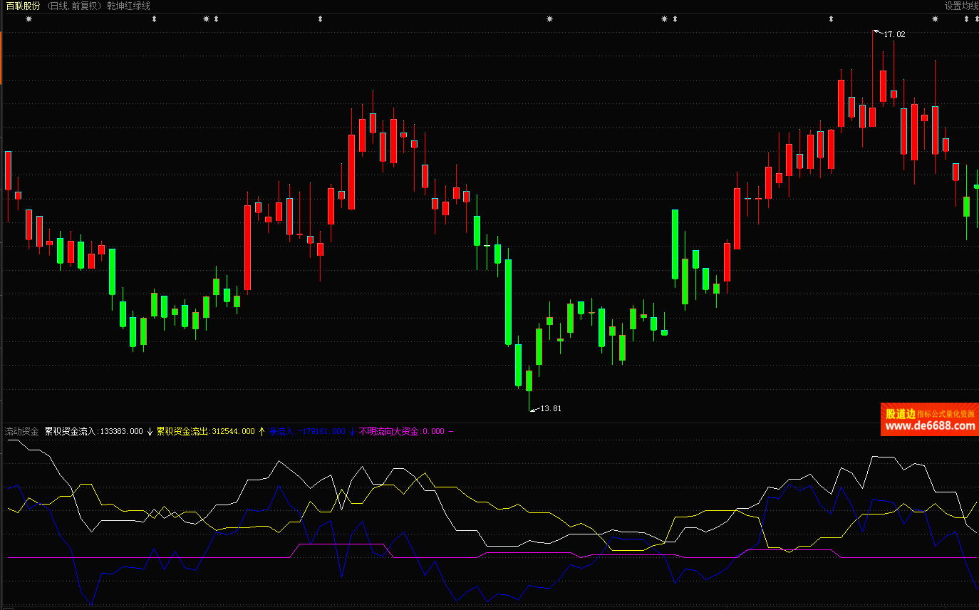 东方财富通软件流动资金副图指标 大资金流入 附图公式源码 加密无时限