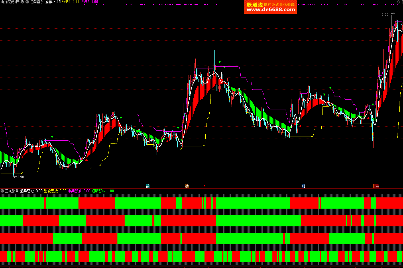 通达信指标三龙聚首副图公式 约牛天龙改编附图指标源码分享 无未来