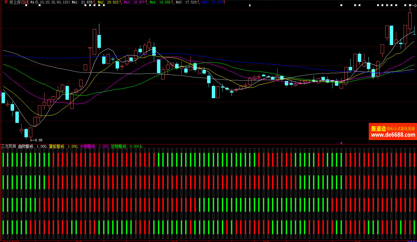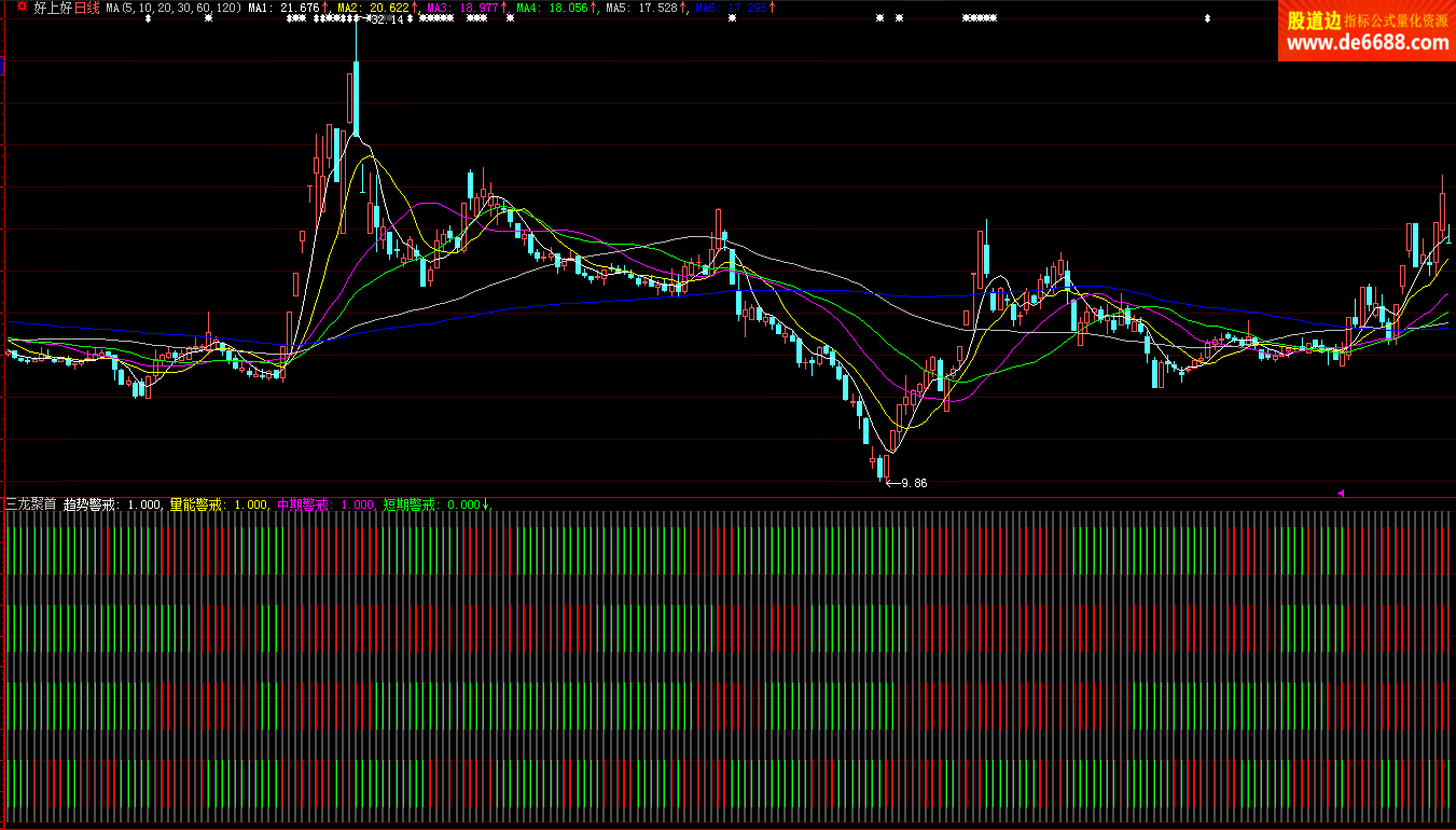 大智慧新版指标 三龙聚首副图公式 约牛天龙改编附图指标源码分享 无未来