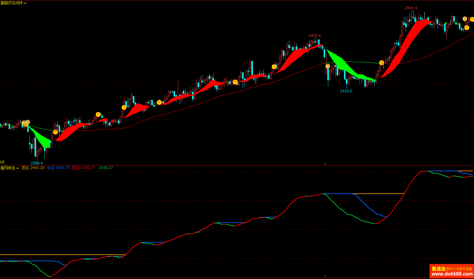 文华财经WH6 富赢双龙戏珠主图公式 双波段线 主图指标源码 加密无时限