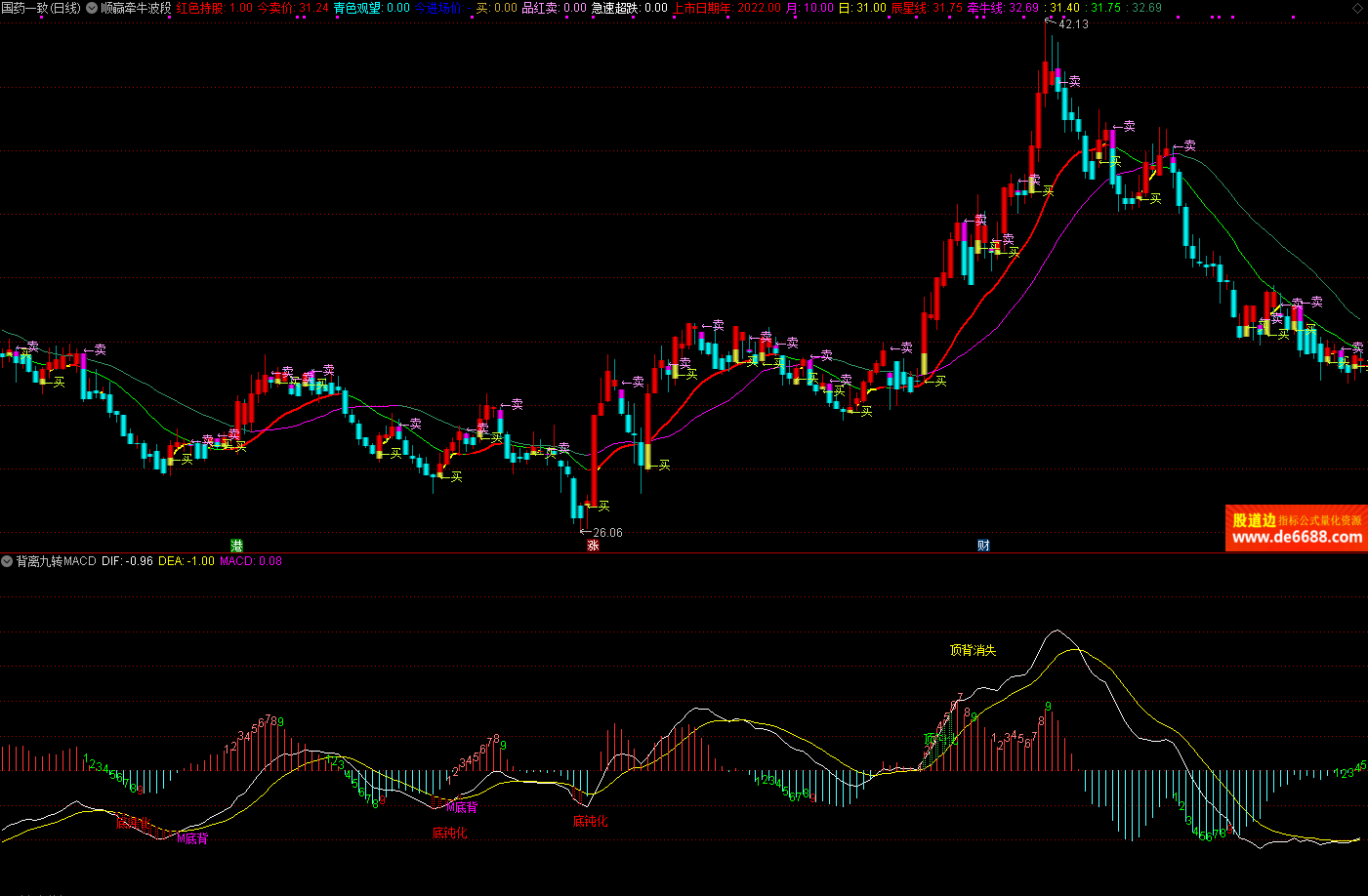 通达信软件 顺赢牵牛波段主图公式 买卖点提示 主图指标源码