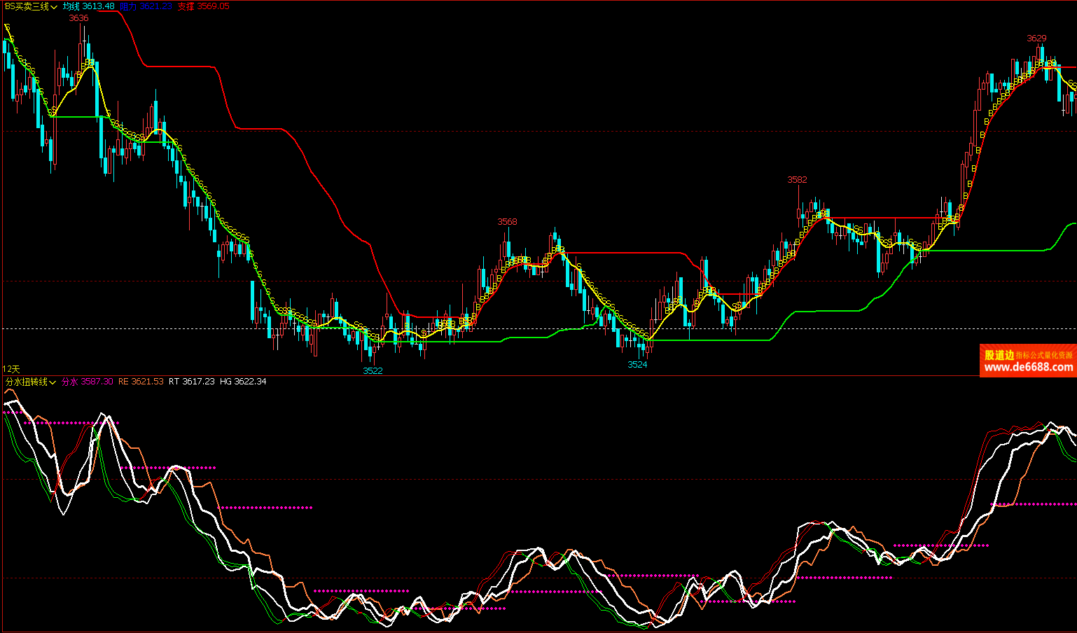 文华财经WH6 分水扭转线副图公式 扭转波段 附图指标源码 加密无时限