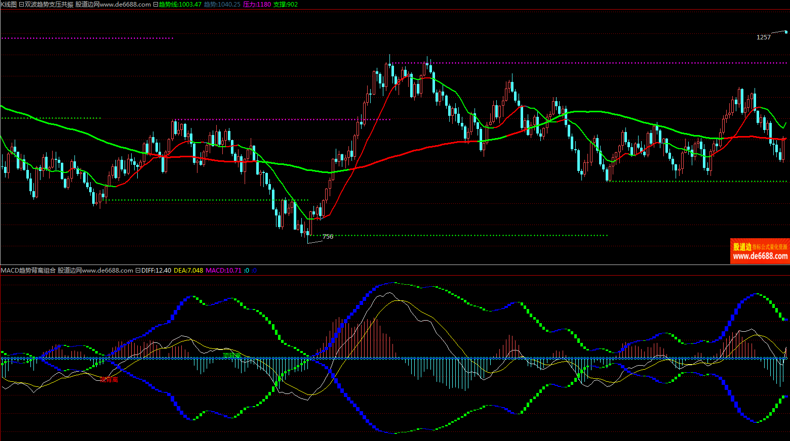 倚天财经软件 双波趋势支压共振主图公式 双趋势变色线 主图指标源码 加密无时限