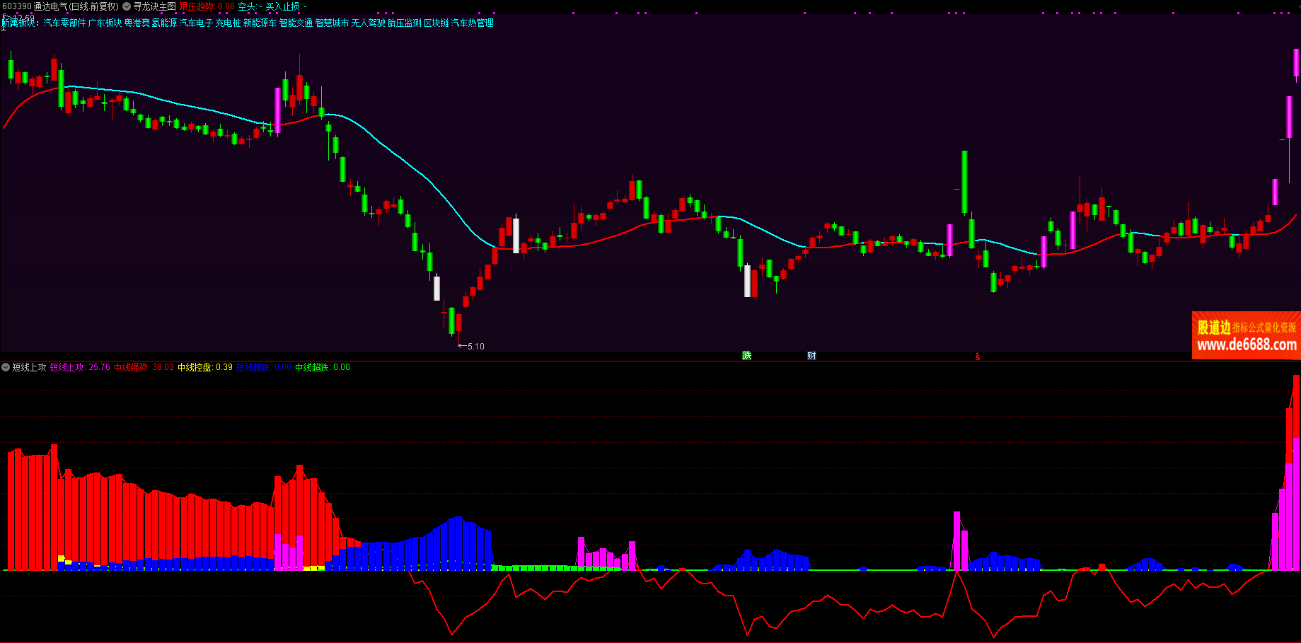 通达信软件 短线上攻副图公式 中线强势控盘 附图指标源码