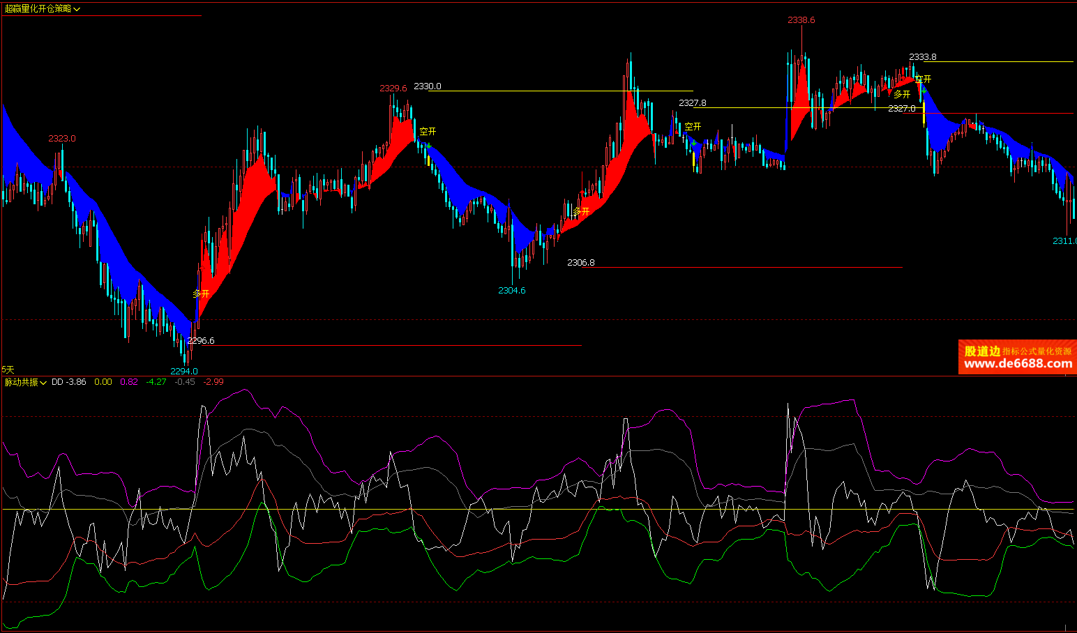 文华财经WH6 脉动共振副图公式 脉动趋势线 附图指标源码 加密无时限