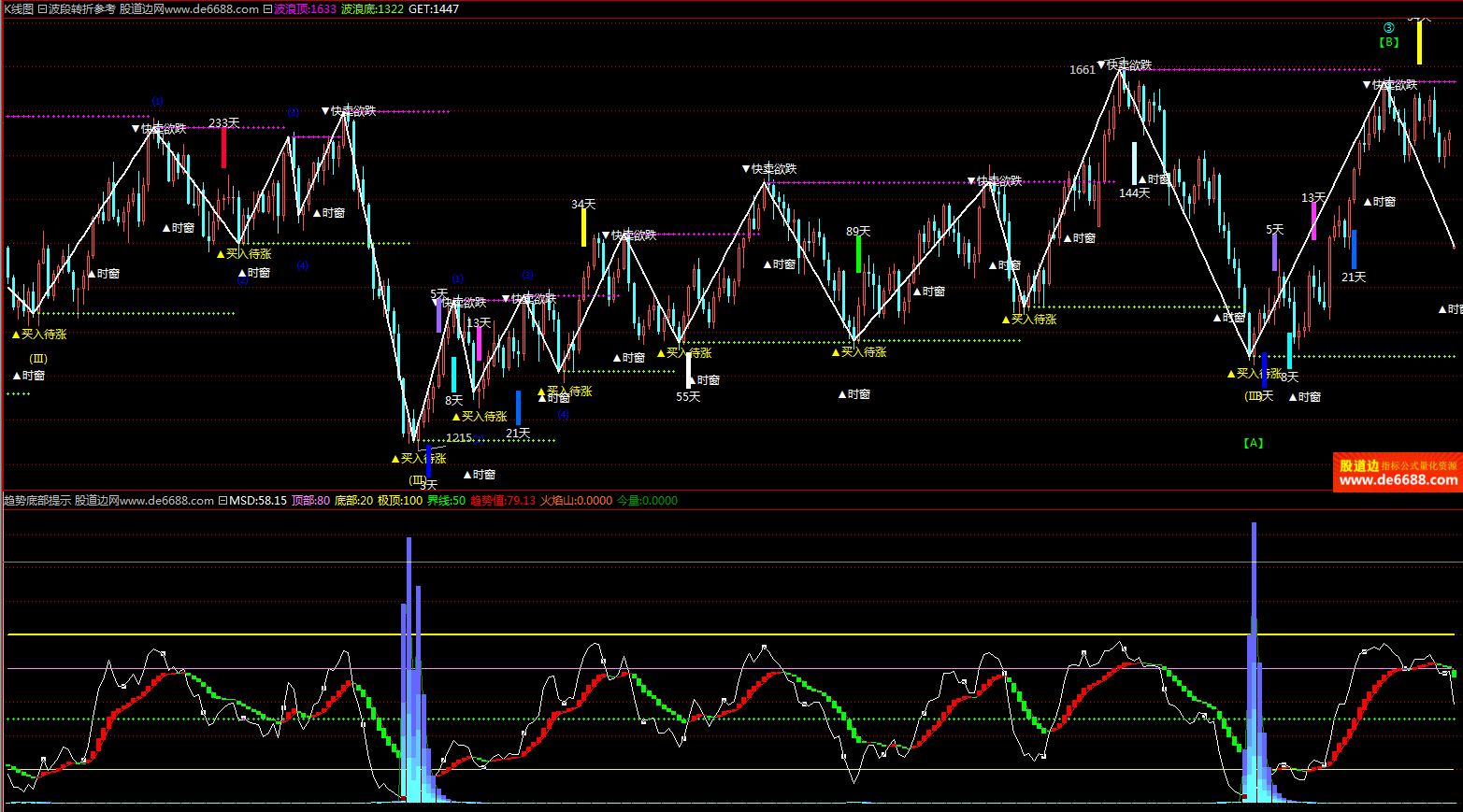 倚天财经软件 波段转折参考主图公式 买卖时窗提示 主图指标源码 加密无时限