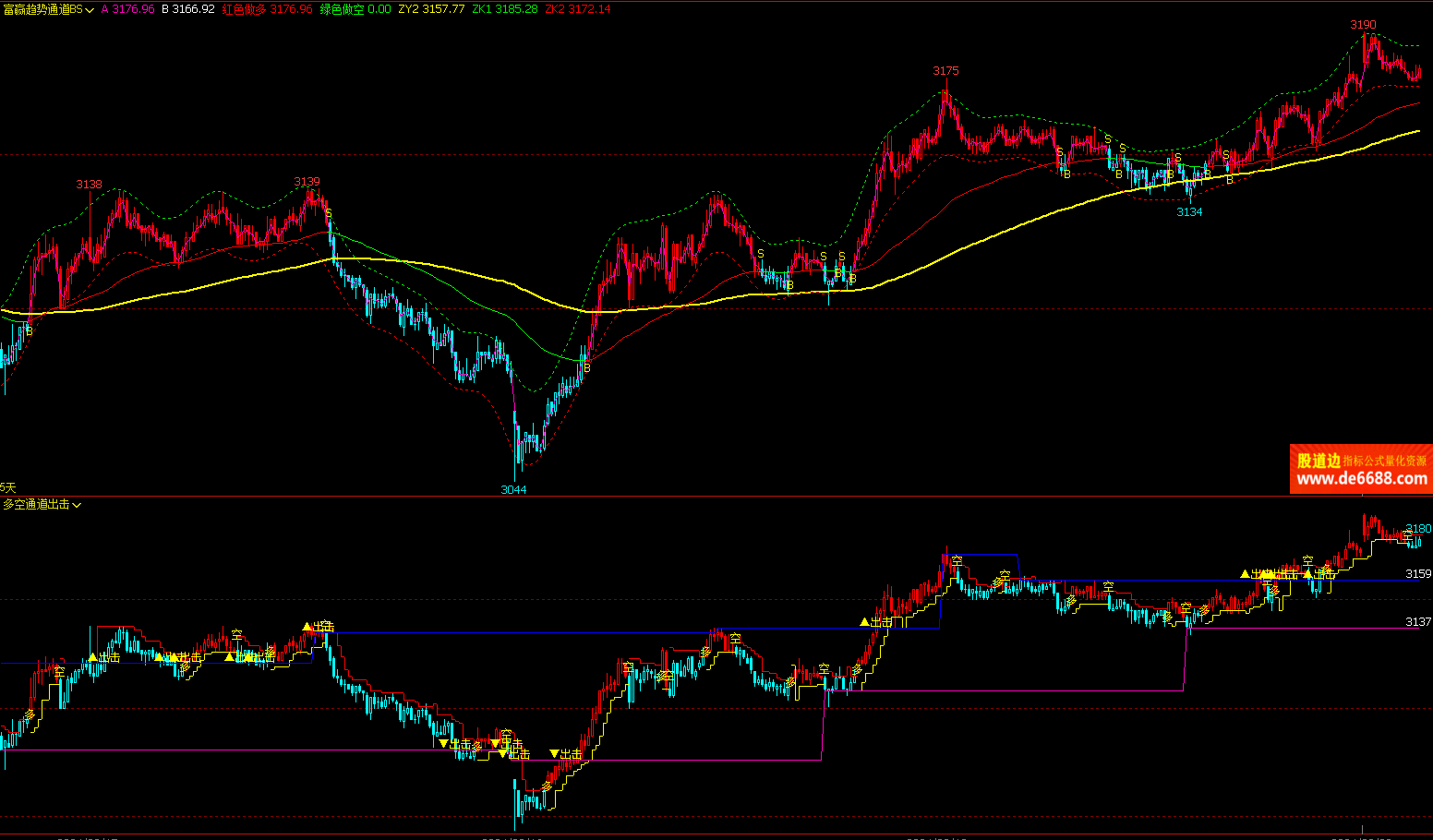 文华财经WH6 富赢趋势通道BS主图公式 BS提示 主图指标源码 加密无时限