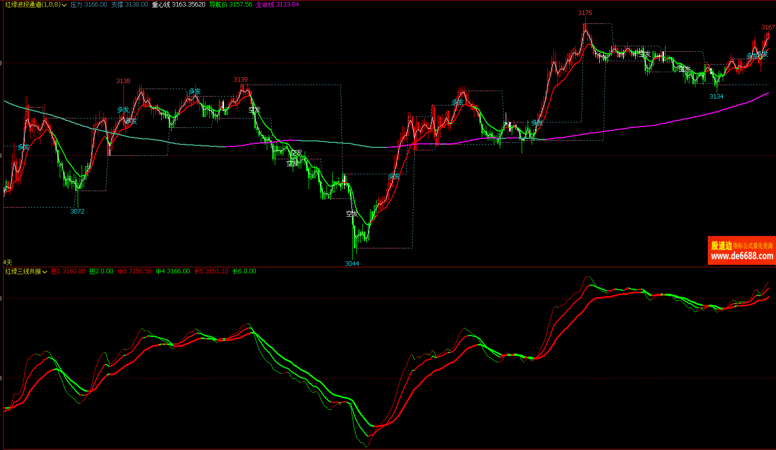 文华财经WH6 红绿波段通道主图公式 支撑压力线 主图指标源码 加密无时限