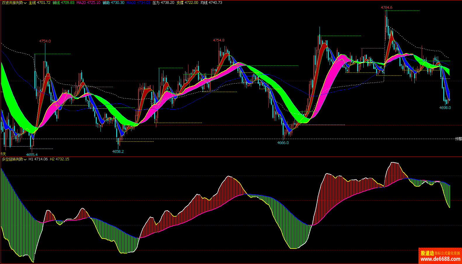 文华财经WH6 多空扭转判势副图公式 红多绿空 附图指标源码 加密无时限