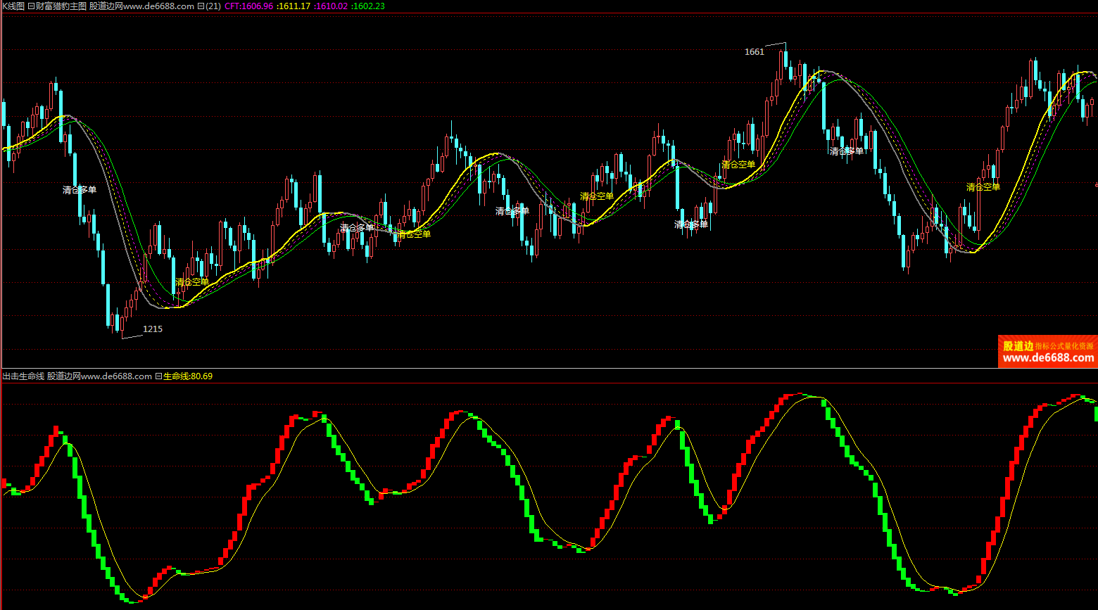 倚天财经软件 出击生命线副图公式 红绿多空 附图指标源码 加密无时限