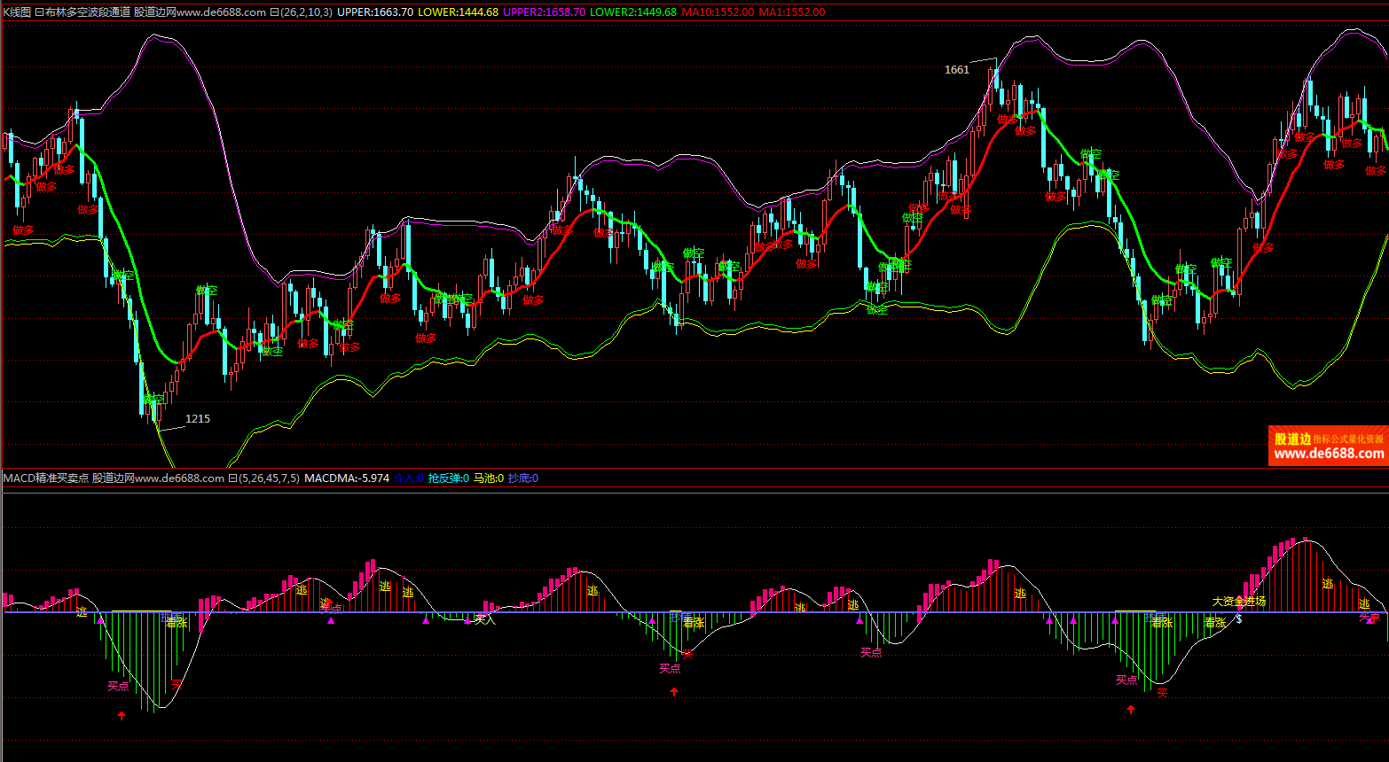 倚天财经软件 布林多空波段通道主图公式 多空提示 主图指标源码 加密无时限
