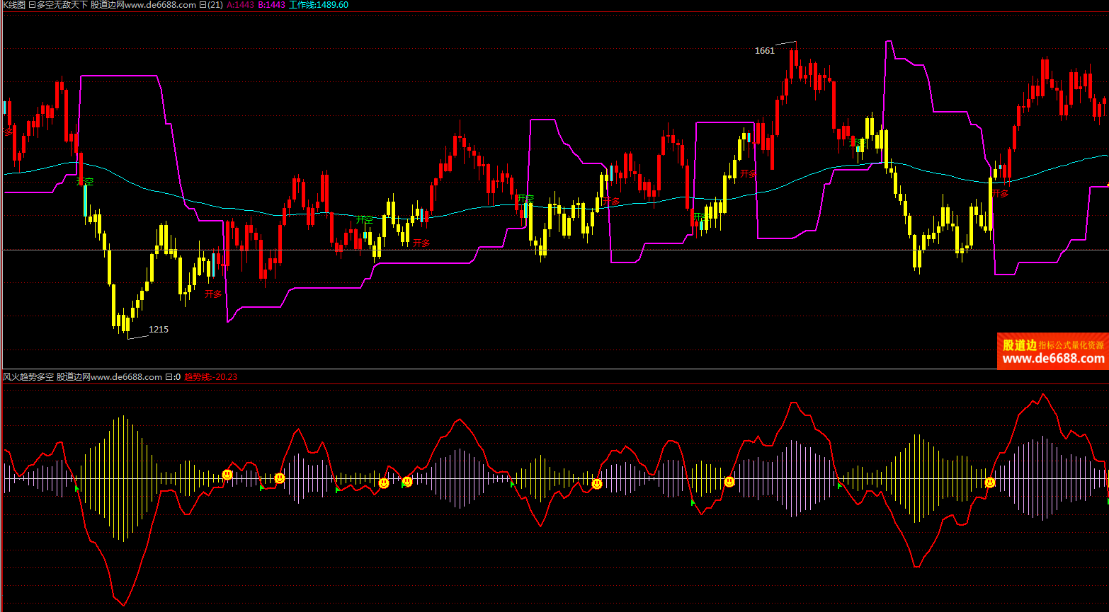 倚天财经软件 多空无敌天下主图公式 多空线 工作线 主图指标源码 加密无时限
