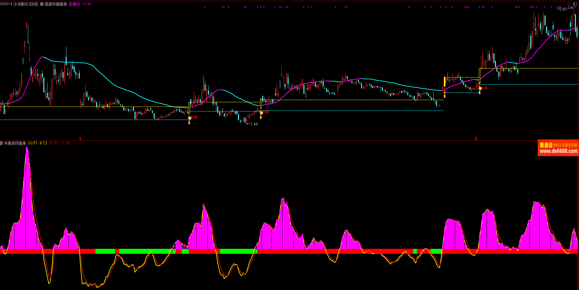 通达信软件 底部共振追涨主图公式 共振底部买点提示 主图指标源码 无未来