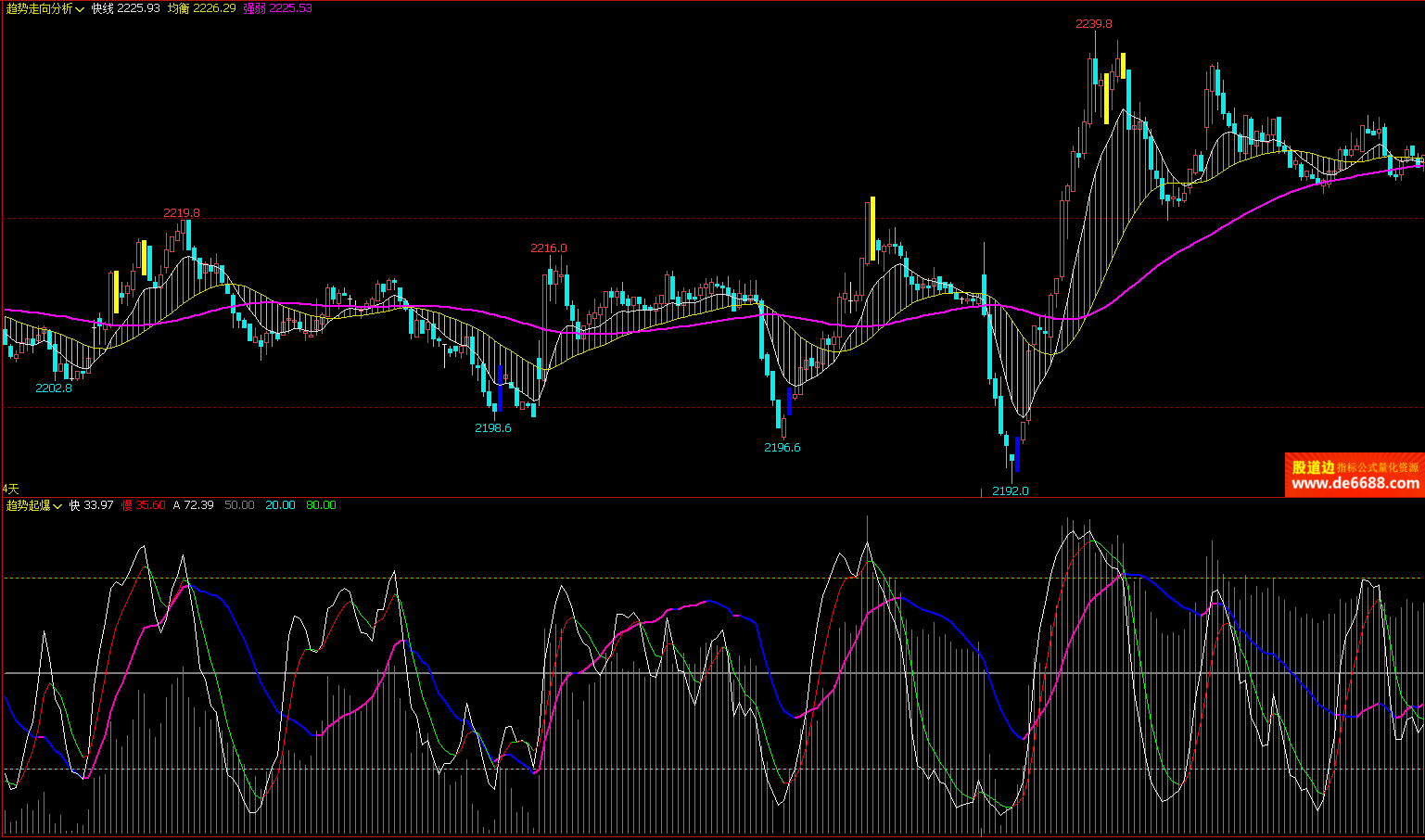 文华财经WH6 趋势起爆副图公式 快慢趋势线 附图指标源码 加密无时限