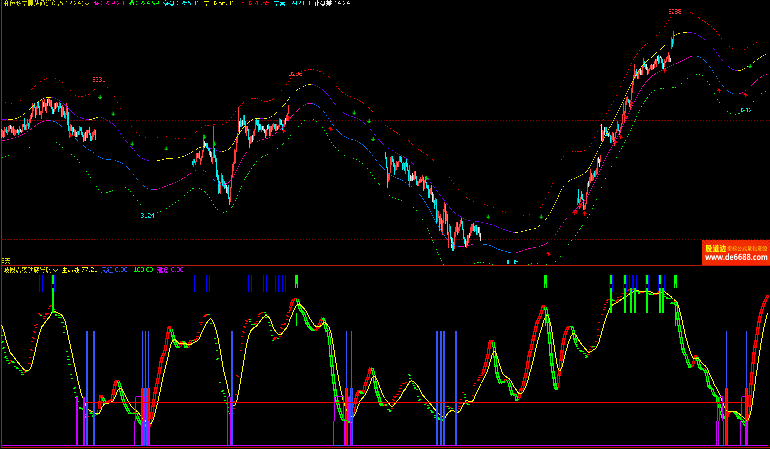 文华财经WH6 变色多空震荡通道主图公式 支撑压力线 主图指标源码 加密无时限