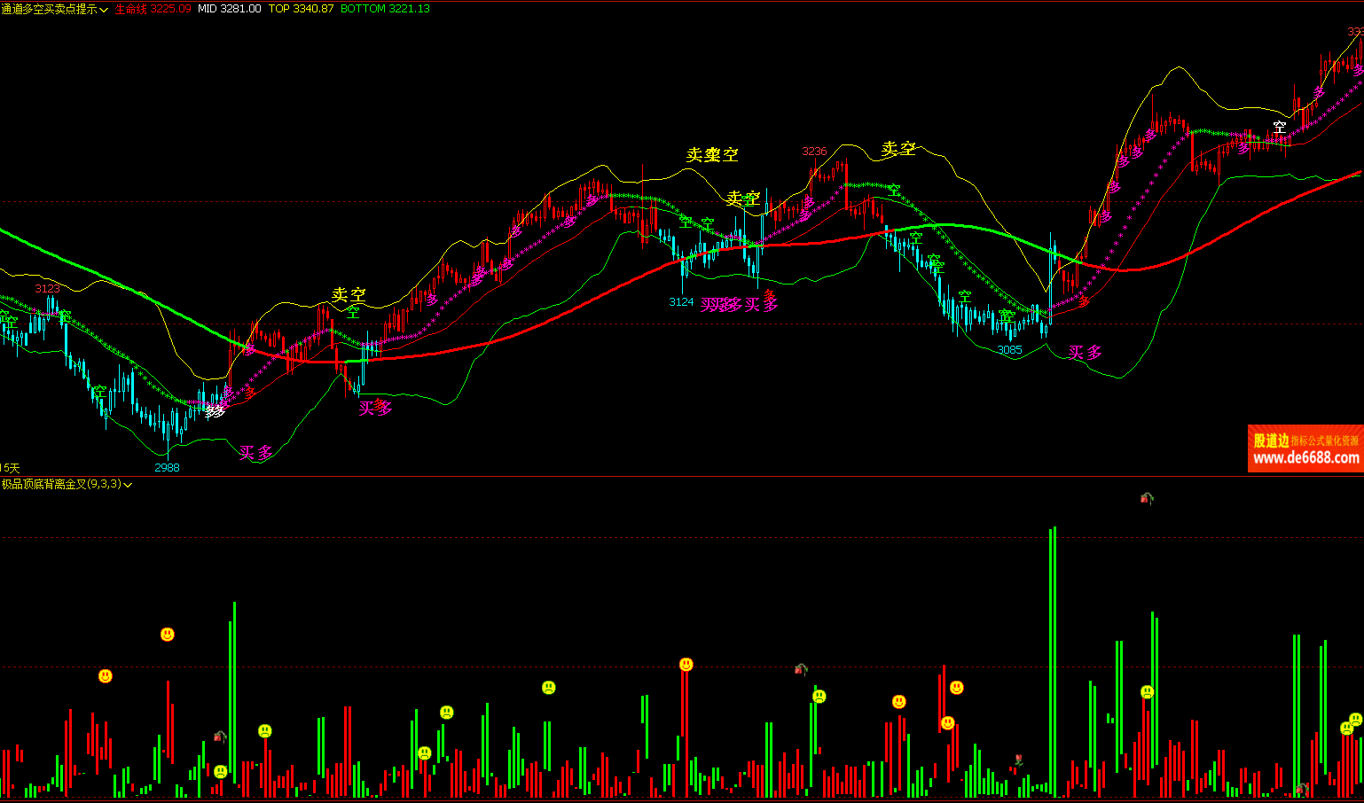 文华财经WH6 通道多空买卖点提示主图公式 红绿趋势线 主图指标源码 加密无时限