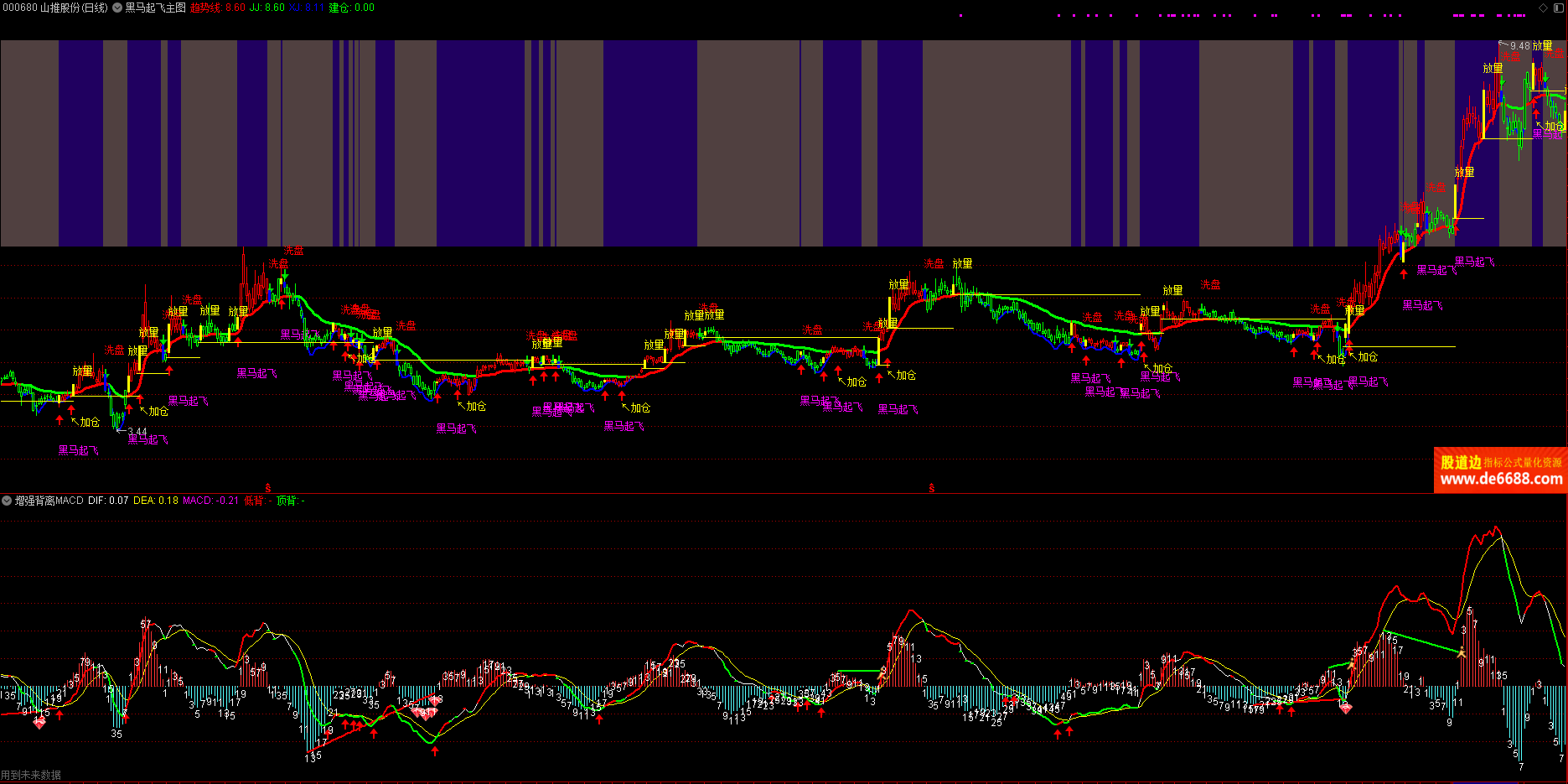 通达信软件 黑马起飞主图公式 趋势放量洗盘提示 主图指标源码