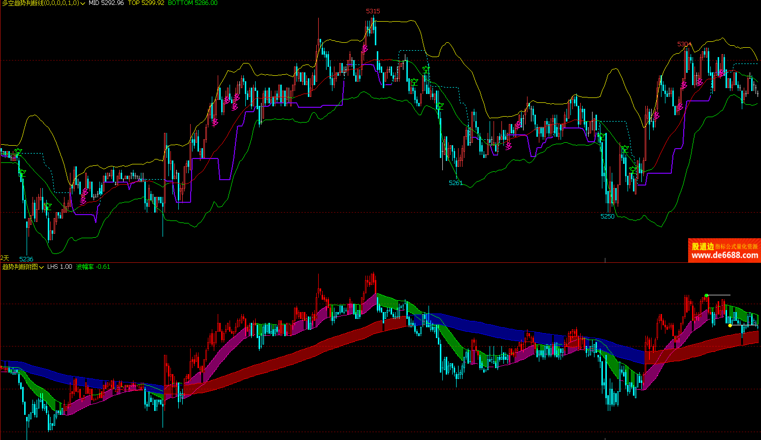 文华财经WH6 趋势判断附图公式 变色波段 副图指标源码 加密无时限