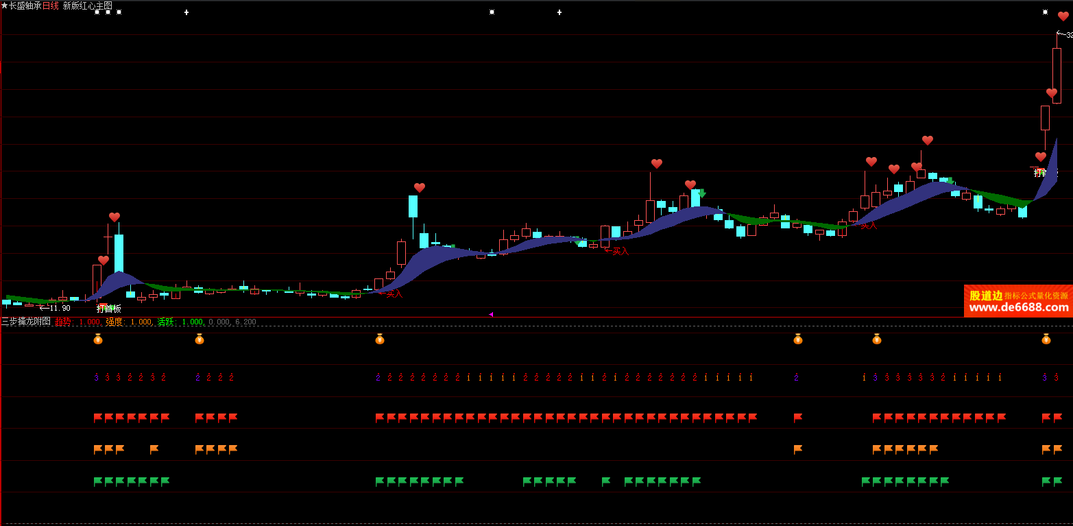 大智慧软件 新版红心主图公式 买入红心波段线 主图指标源码加密无时限