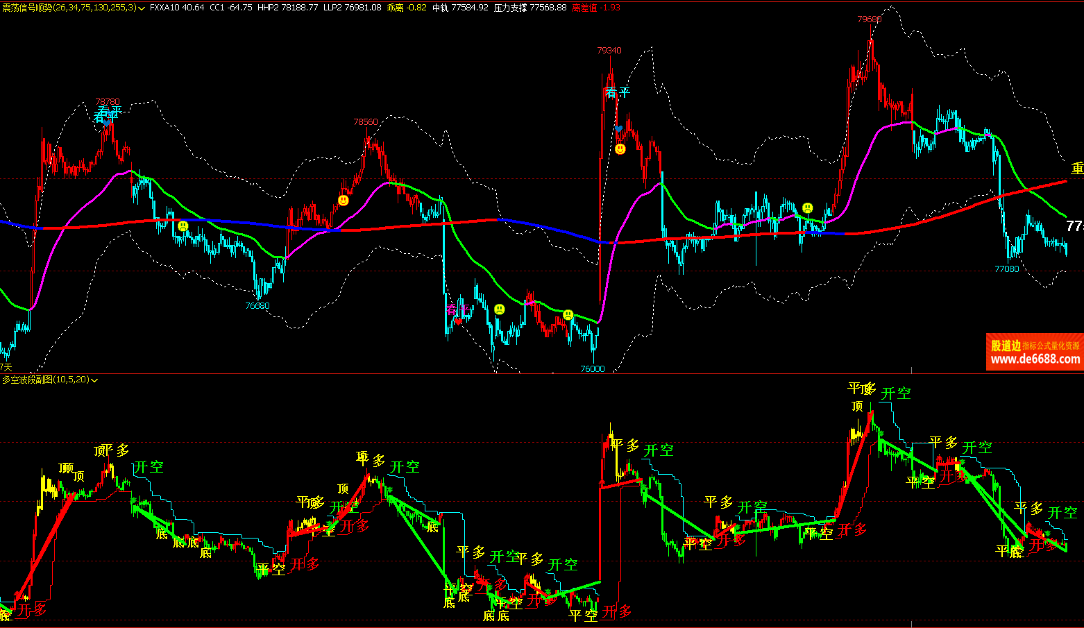 文华财经WH6 震荡信号顺势主图公式 压力支撑通道线 主图指标源码 加密无时限