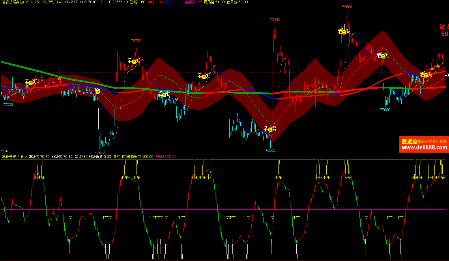 文华财经WH6 富赢波段突破主图公式 买卖趋势信号 主图指标源码 加密无时限