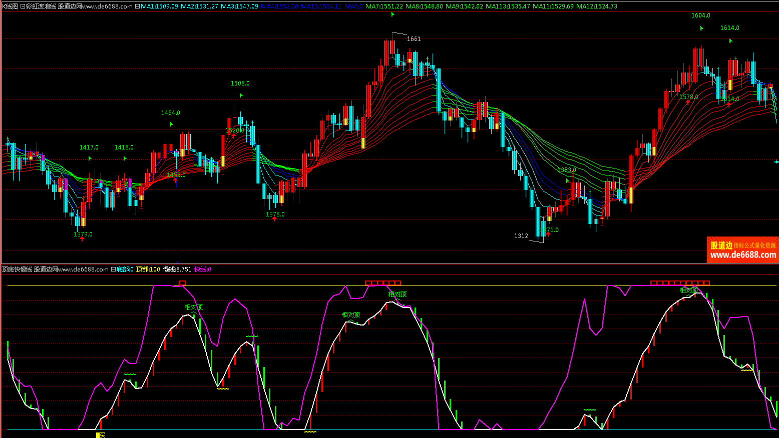 倚天财经软件彩虹波浪线主图公式 红多绿空波段 主图指标源码 加密无时限