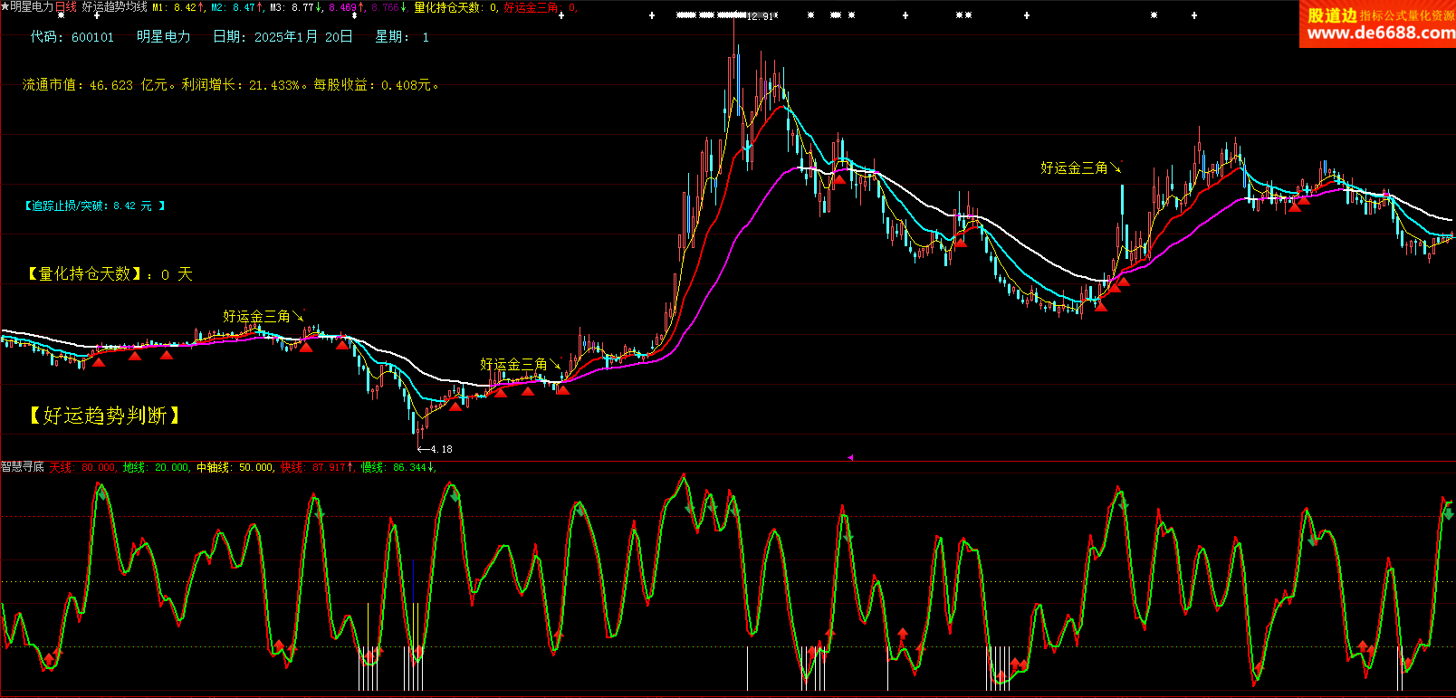 大智慧软件好运趋势均线主图公式 底部金三角提示 主图指标源码加密无时限