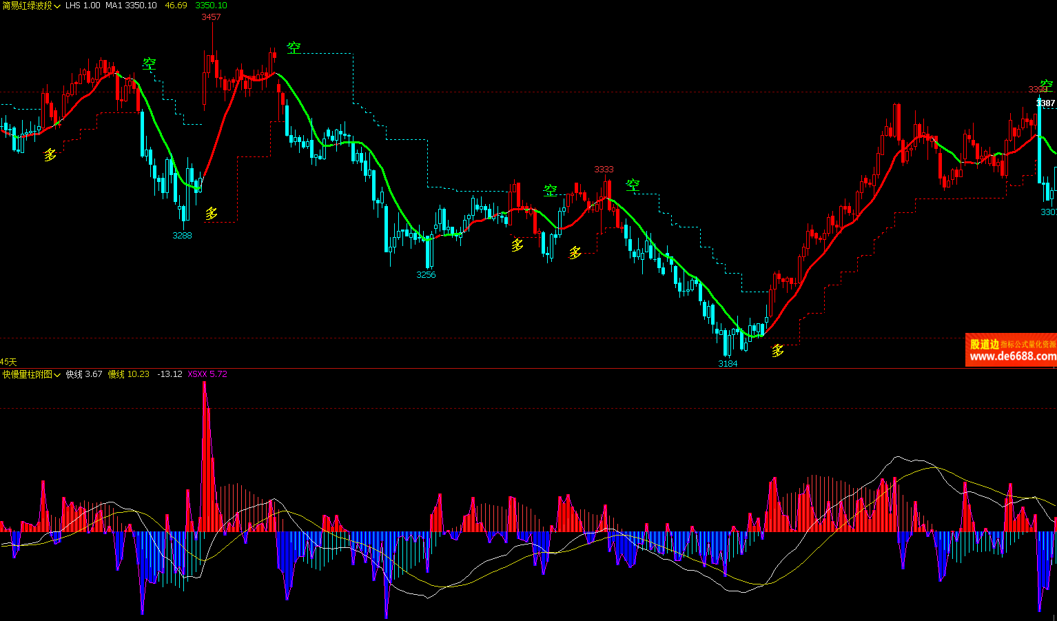 文华财经WH6 简易红绿波段主图公式 红多绿空 主图指标源码 加密无时限