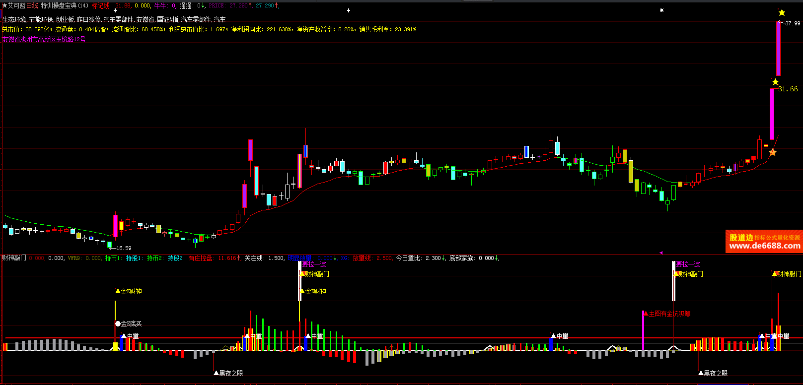 大智慧软件财神敲门副图公式 有庄控盘 放量线 附图指标源码 加密无时限