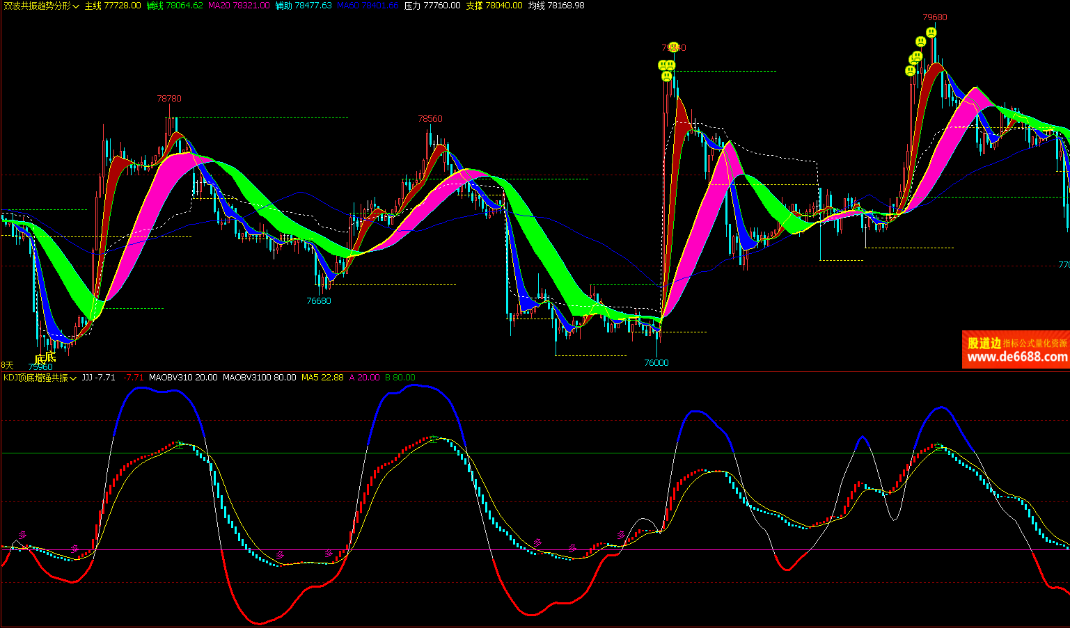 文华财经WH6 KDJ顶底增强共振副图公式 波段顶底 附图指标源码 加密无时限