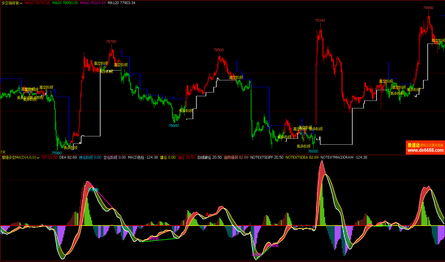 文华财经WH6 增强多空MACD副图公式 背离连线 附图指标源码 加密无时限