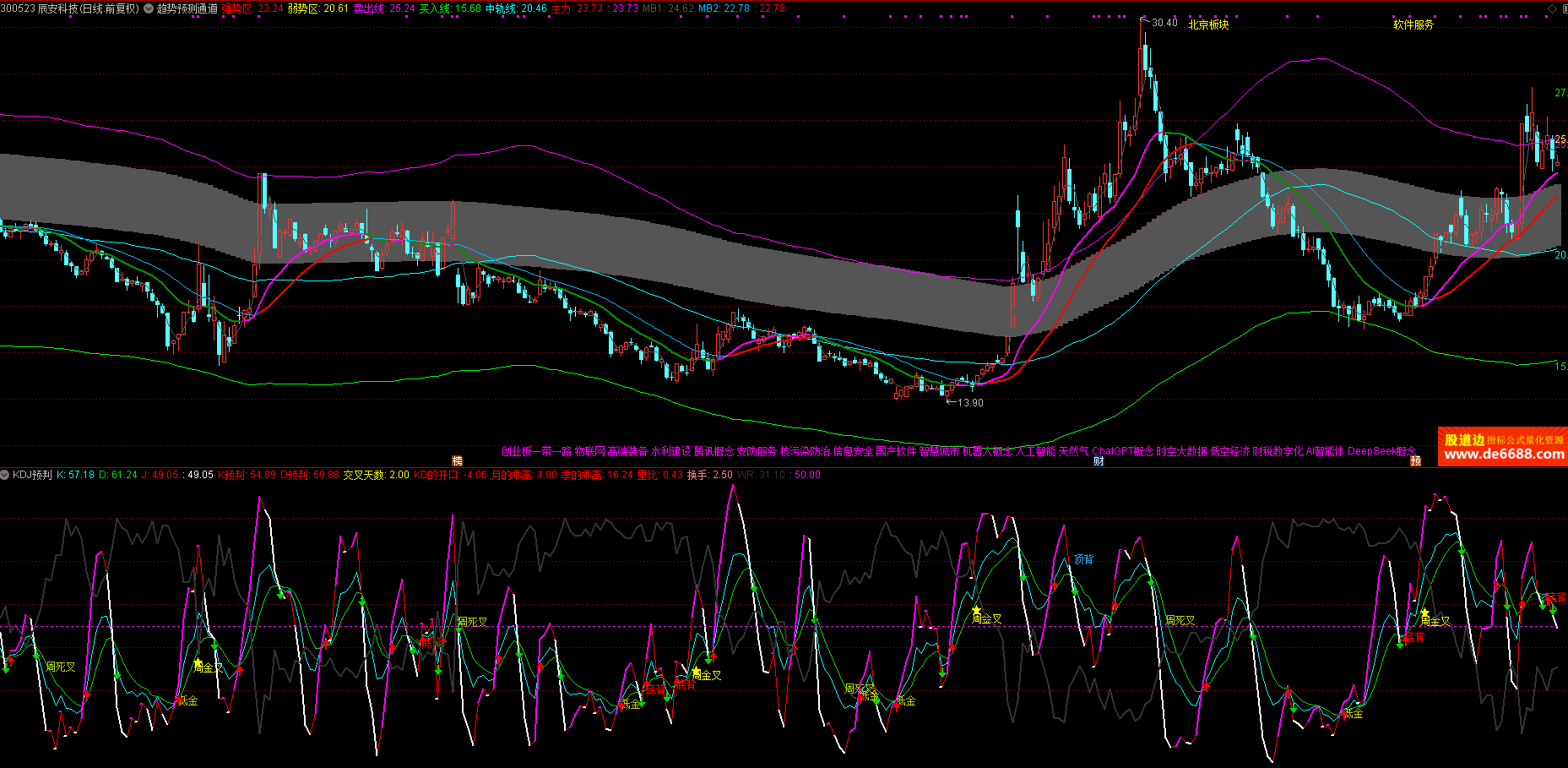 通达信软件使用 趋势预测通道主图公式 主力线 买入线 主图指标源码