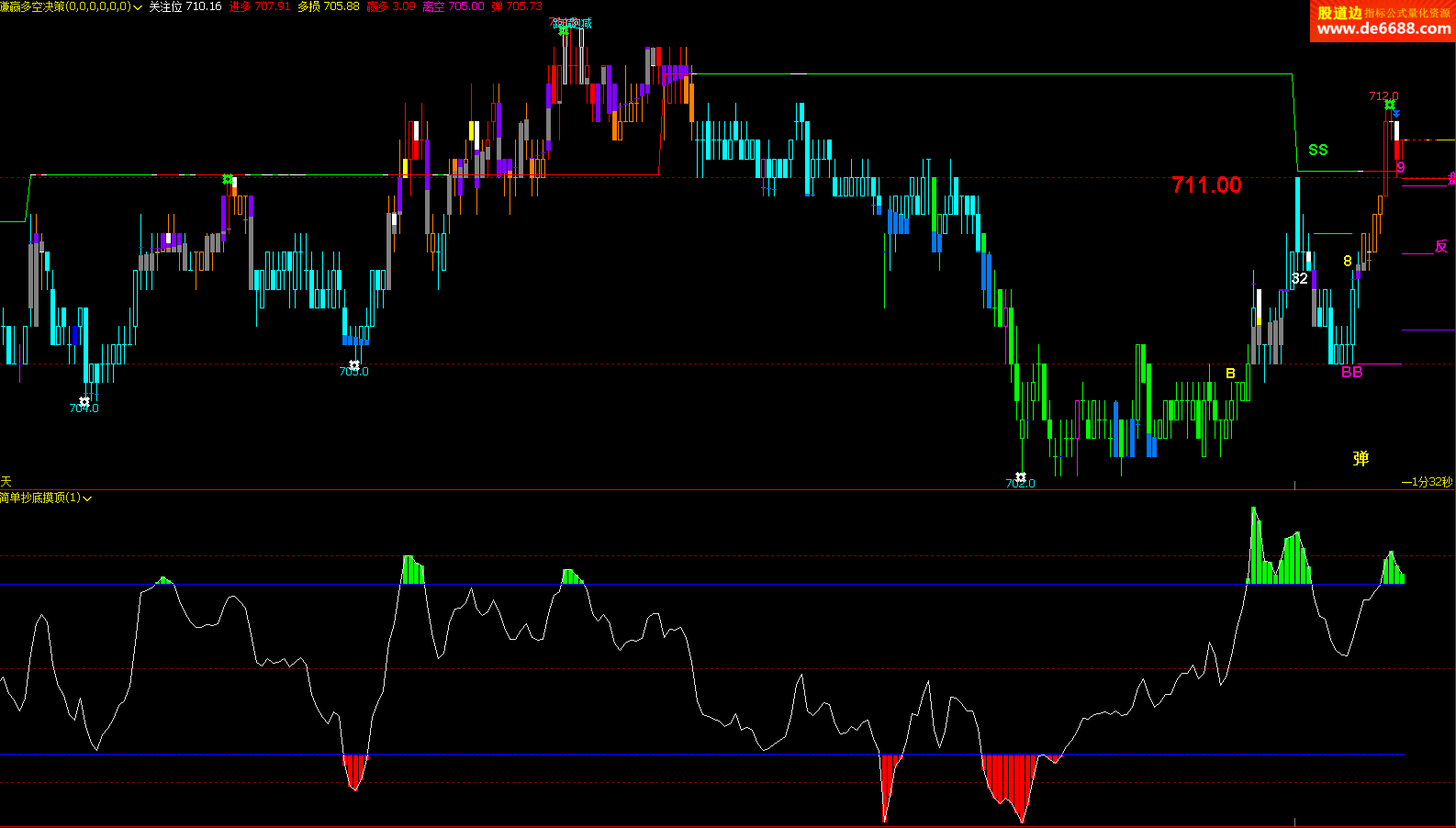 文华财经WH6 简单抄底摸顶副图公式 红底绿顶提示 附图指标源码 加密无时限