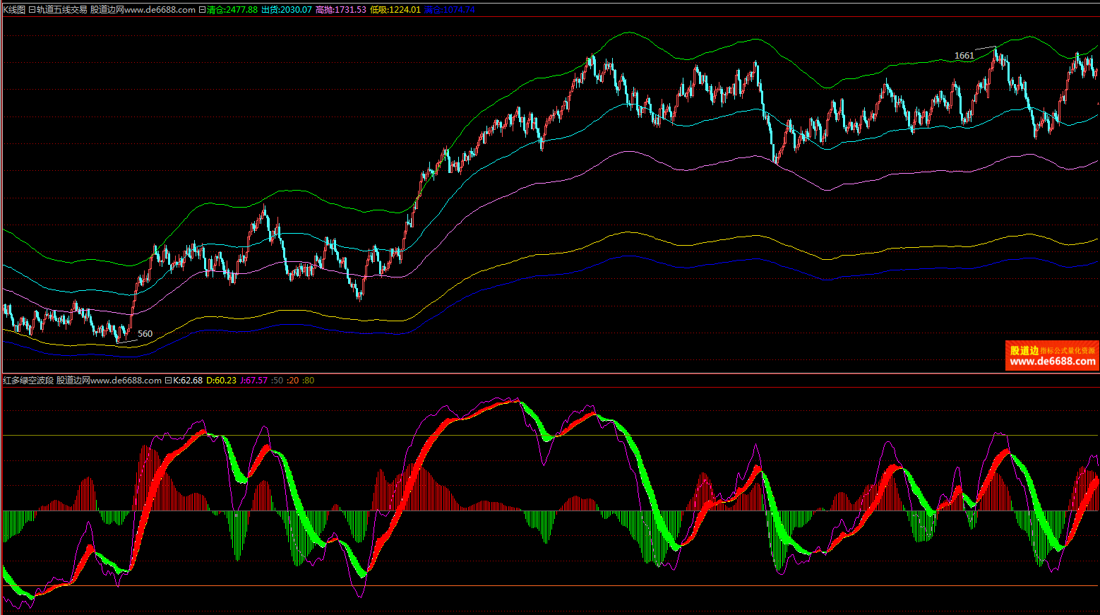 倚天财经软件 红多绿空波段副图公式 KDJ增强 附图指标源码加密无时限