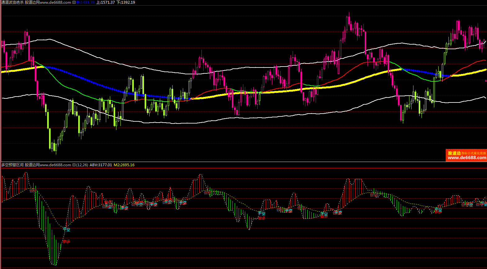 倚天财经软件 通道波浪绝杀主图公式 红绿波段线 主图指标源码加密无时限
