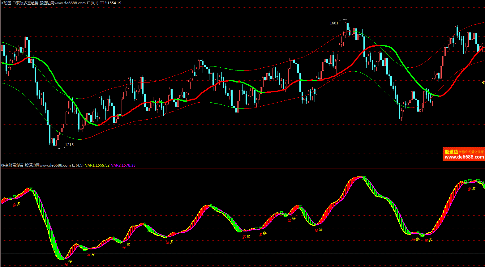 倚天财经软件 多空财富彩带副图公式 多空提示 附图指标源码加密无时限