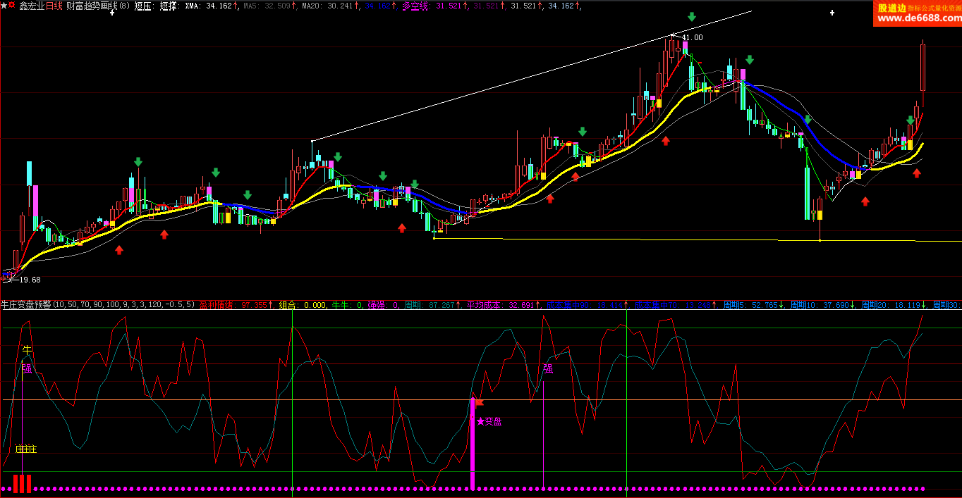 大智慧软件 财富趋势画线主图公式 多空趋势划线 主图指标源码加密无时限