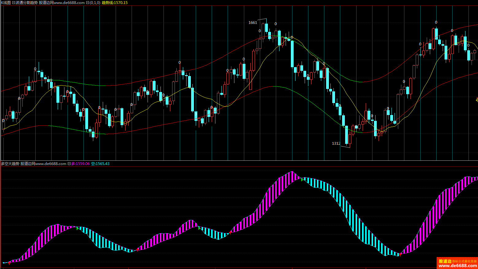 倚天财经软件 波通分割趋势主图公式 趋势分割线 主图指标源码加密无时限