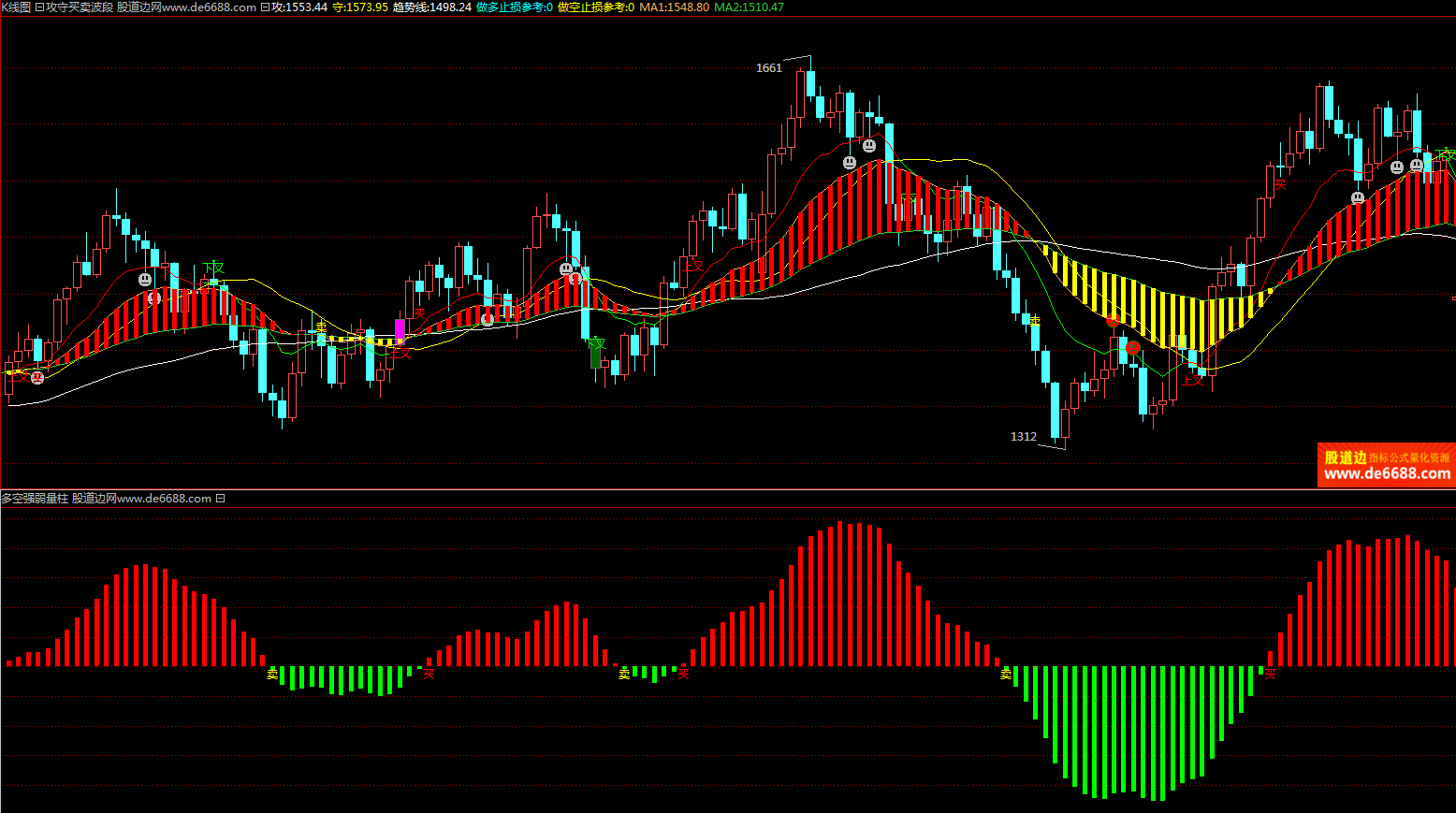 倚天财经软件 攻守买卖波段主图公式 上叉下叉提示 主图指标源码加密无时限