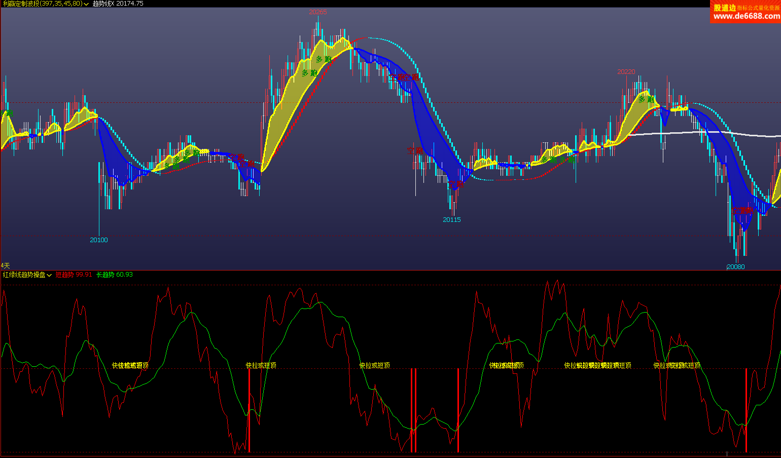 文华财经WH6 利赢定制波段主图公式 黄蓝趋势 主图指标源码 加密无时限
