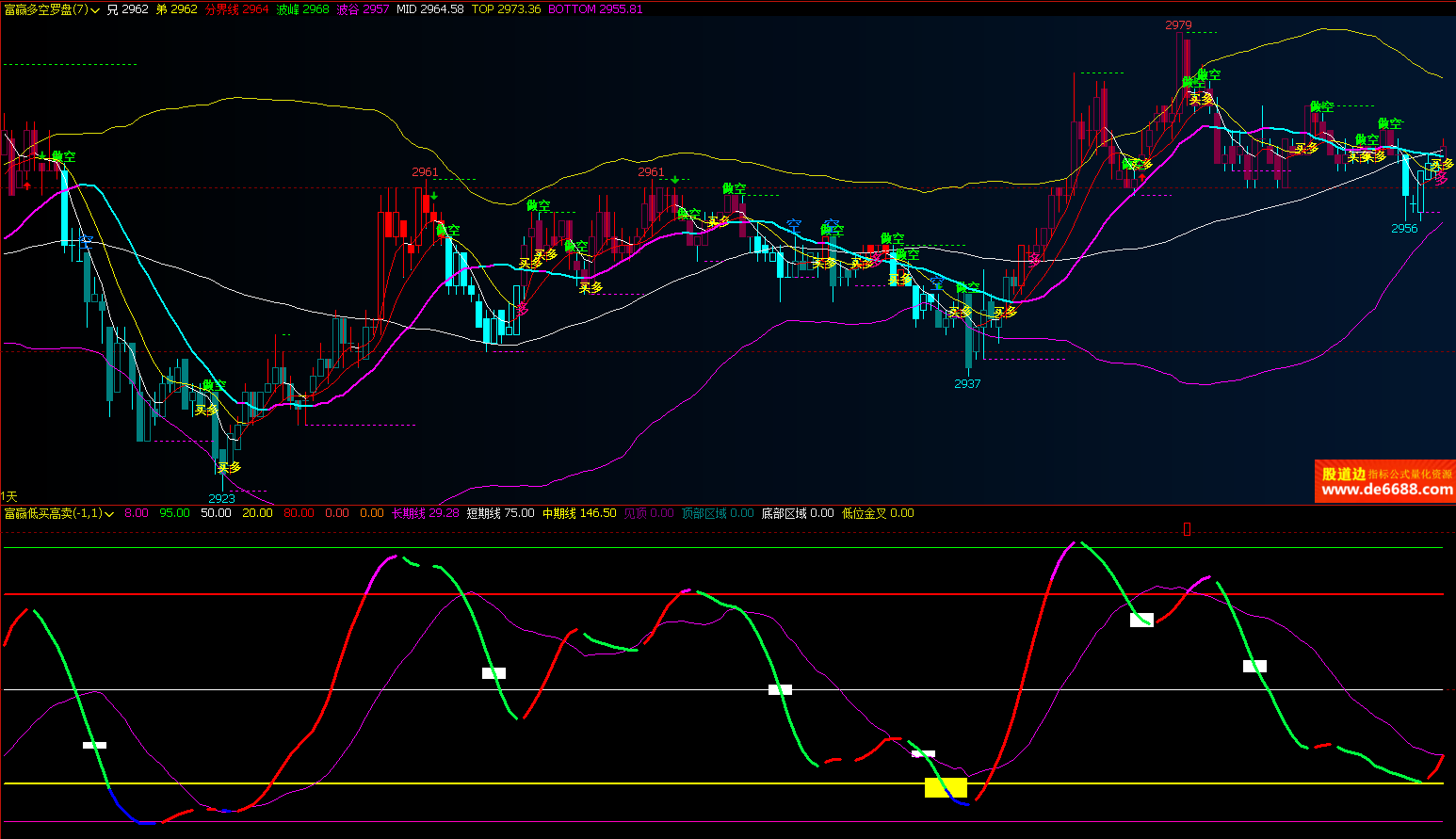 文华财经WH6 富赢多空罗盘主图公式 多空提示 主图指标源码 加密无时限