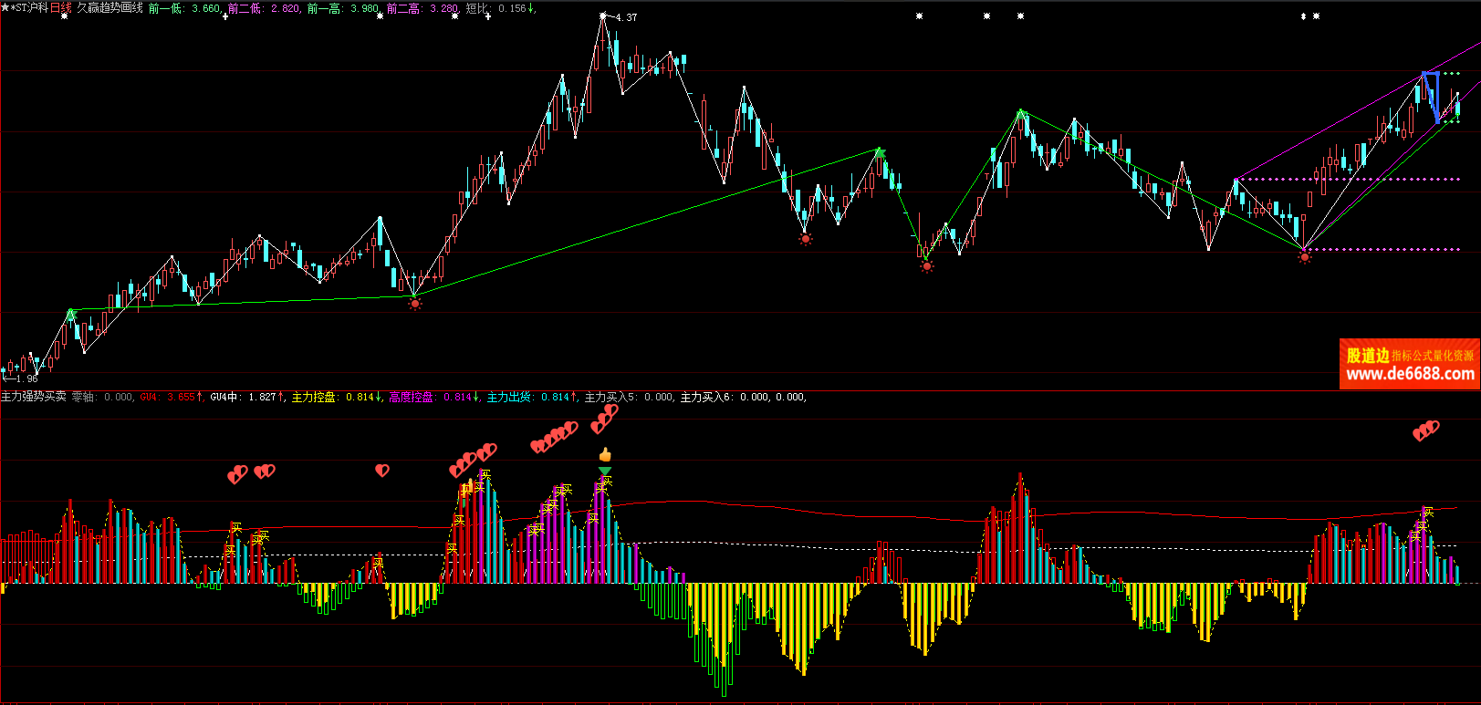 大智慧软件 主力强势买卖副图公式 强势买点 附图指标源码 加密无时限