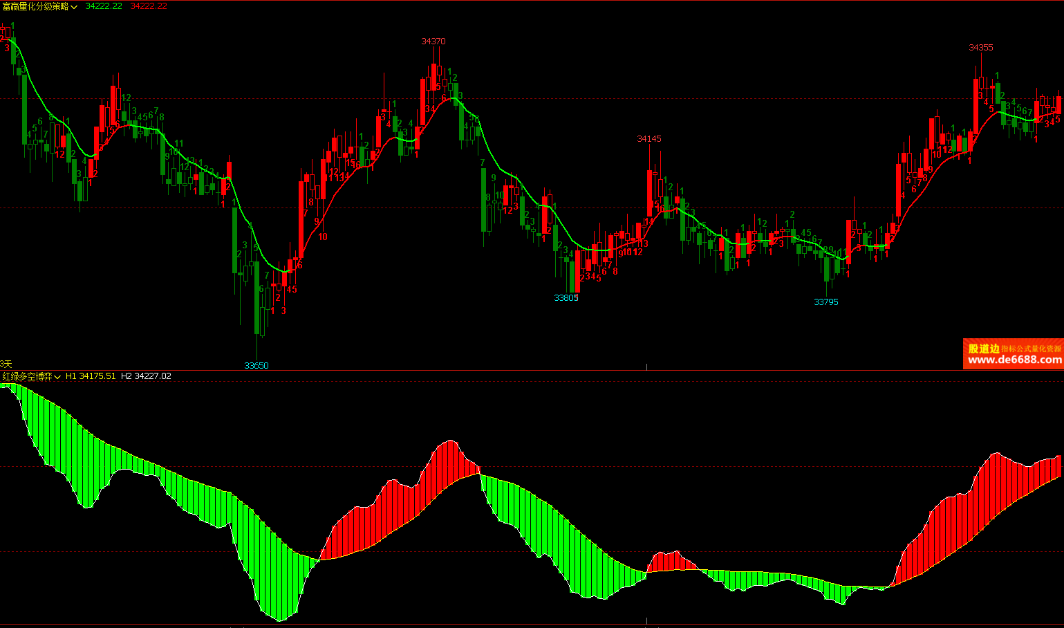 文华财经WH6 富赢量化分级策略主图公式 红绿数字量化 主图指标源码 加密无时限