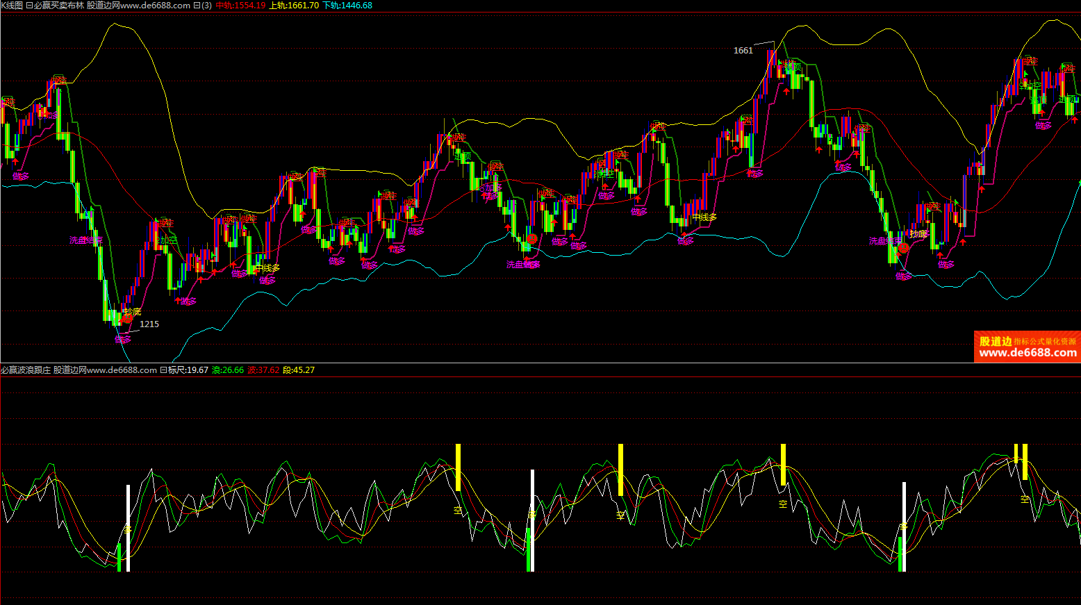 倚天财经软件 必赢波浪跟庄副图公式 多空提示柱 附图指标源码加密无时限