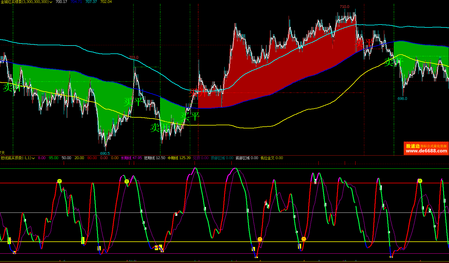 文华财经WH6 金城红买绿卖主图公式 买卖开平提示 主图指标源码 加密无时限