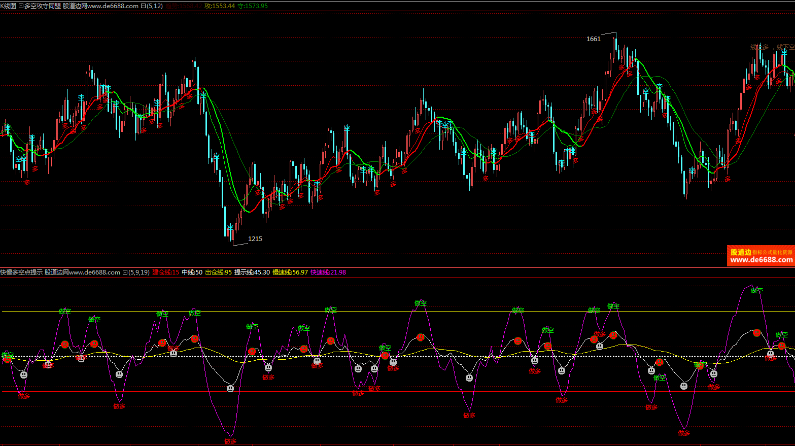 倚天财经软件 多空攻守同盟主图公式 攻守趋势线 主图指标源码加密无时限
