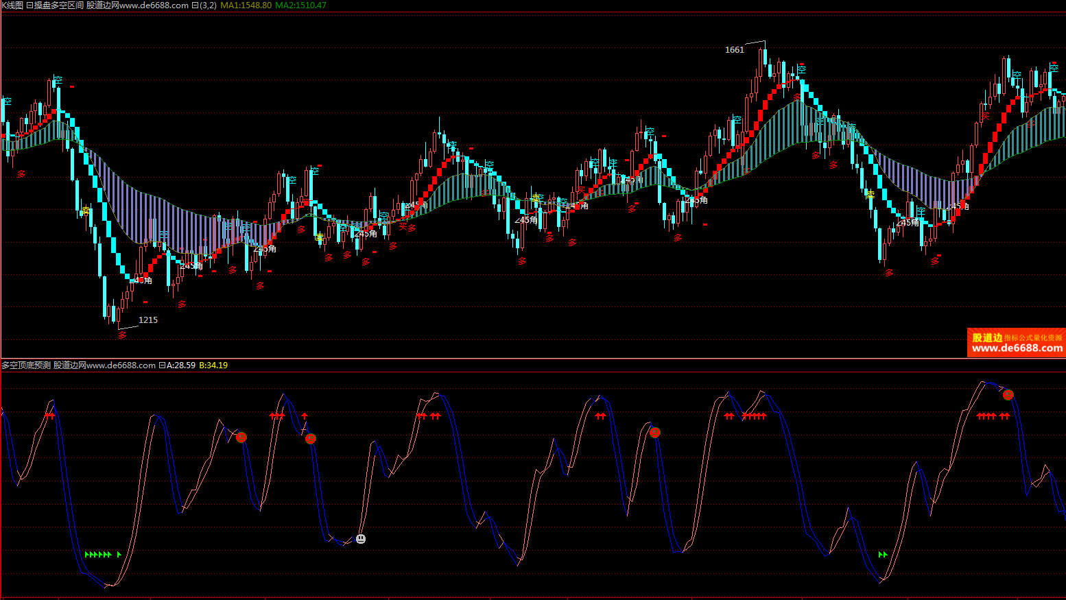 倚天财经软件 多空顶底预测副图公式 顶底背离 附图指标源码加密无时限
