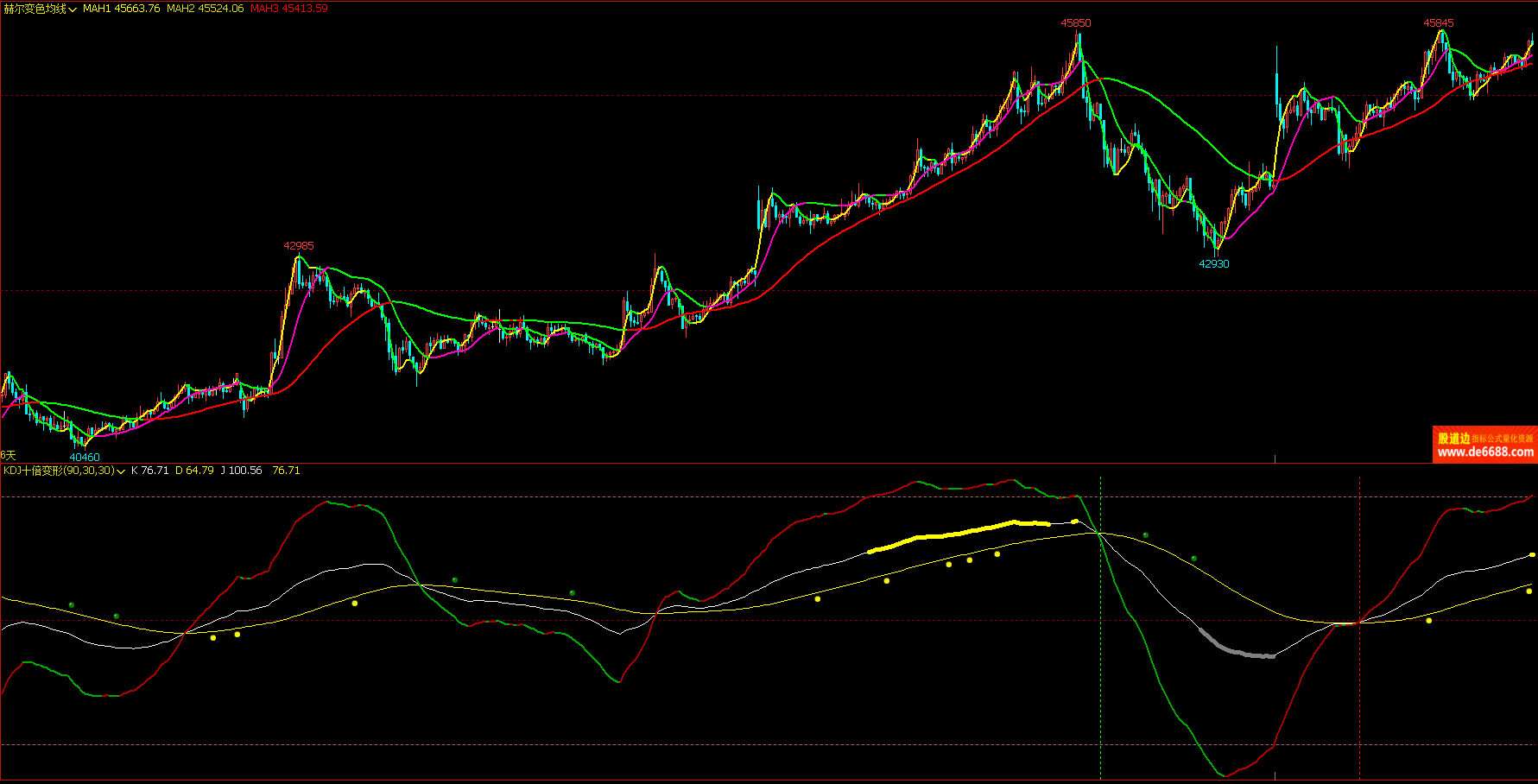 文华财经WH6 KDJ十倍变形副图公式 变色线 附图指标源码 加密无时限