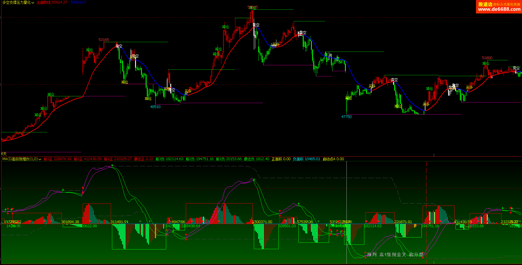 文华财经WH6 多空支撑压力量化主图公式 买多减仓提示 主图指标源码 加密无时限